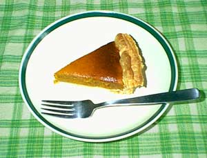 - パイシートをひいた型にフィリングを流しいれ、210度のオーブンで15分焼き、温度を180度に下げて約20分焼く。竹串を刺してみて、何もついてこなければ焼き上がり。