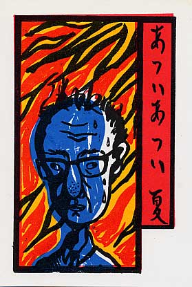 暑中見舞い今年は冷夏のようだ。夏休みも真っ盛りの8月2日だというのに、私の部屋はまだ33度までしか気温が上がっていない。「何それ!暑いじゃん!!」と思われるかもしれないが、例年通りなら軽く37度は超えている季節である。海の家などは、この夏まともに営業できたのはたったの一日だけとのこと。 |