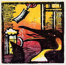 | 多色板目木版刷り。昔あった"ペンギンズバー"というビールの味を思いだしながら作った |