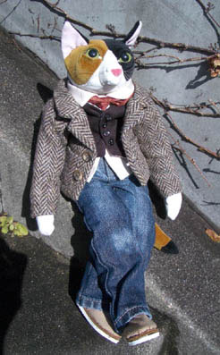 5年程前から作り始めた動物の姿をした人形です。初めは20cmくらいのクタクタしたぬいぐるみでした。そのうちもっと大きくしたらどうだろう?着せ変えのできる人形にしたらどうだろう?と変化していき、今の姿になりました。 |